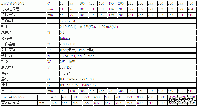 德國VOLFA LWF-1250-A1直線位移傳感器同一系列不同量程:zjp廣州南創(chuàng)電子科技有限公司
