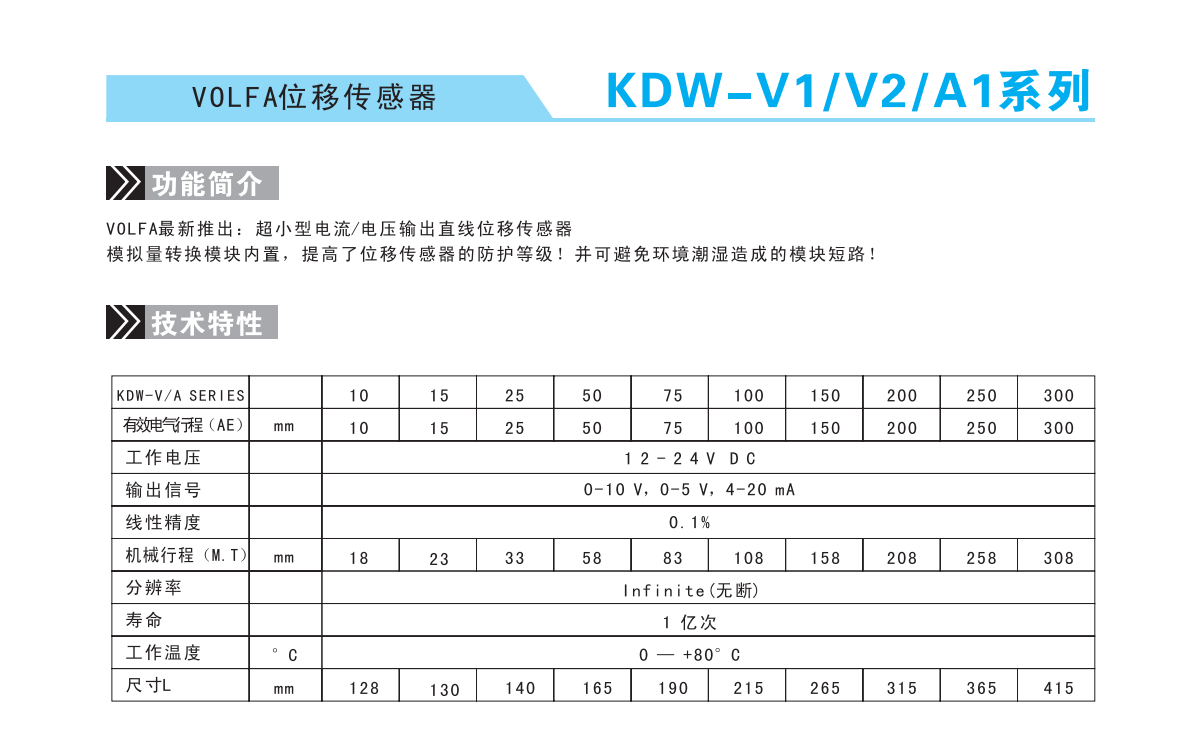 KDW-25-R5 Volfa位移傳感器型號類別技術參數(shù)選型安裝等資料信息,如果有關