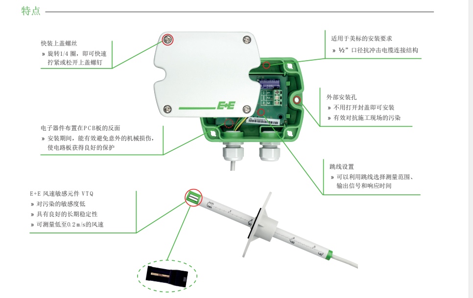 ee650風(fēng)速顯示器VTQ-風(fēng)速敏感元件VTQ是由E+E公司最新研發(fā)的薄膜風(fēng)速敏感元件,具有卓越的機(jī)械穩(wěn)定性和抗污染能力。該敏感元件結(jié)合了E+E研發(fā)的薄膜式風(fēng)速工作原理的特點(diǎn)和高品質(zhì)的塑封工藝的優(yōu)點(diǎn)。