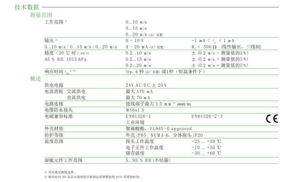 奧地利E+E風(fēng)速傳感器其他相關(guān)系列產(chǎn)品介紹:ee650風(fēng)速變送器安裝期間,能有效避免意外的機(jī)械損傷,使電路板獲得良好的保護(hù)。熱膜式風(fēng)速測量原理——E+E各類風(fēng)速測量設(shè)備都是基于熱模風(fēng)速原理和E+E研發(fā)的薄膜敏感元件。與差壓或葉輪流量計(jì)相比,熱式流量測量有以下特別的優(yōu)勢!