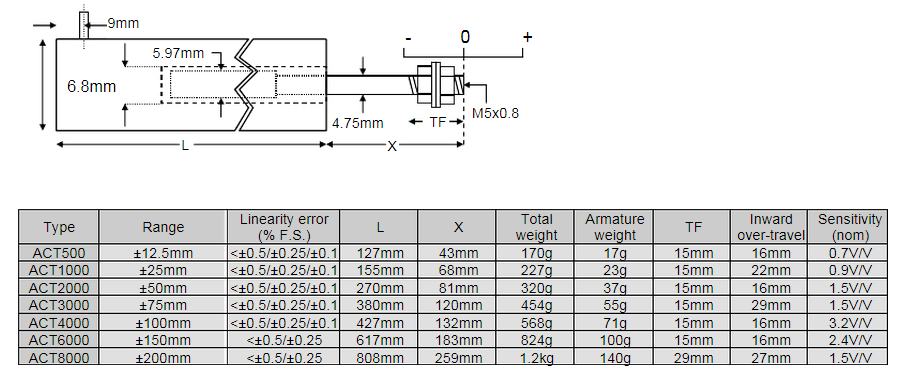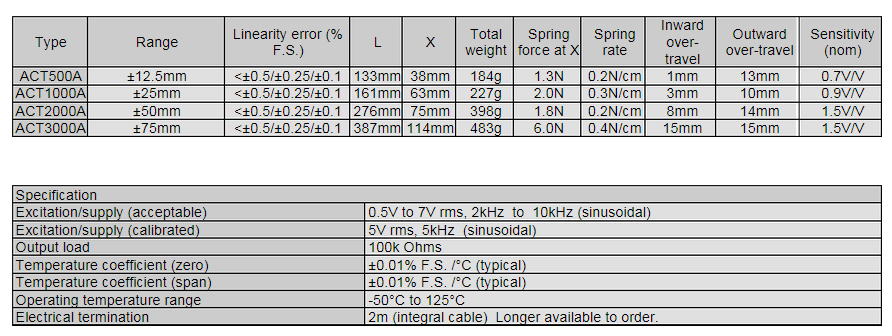 英國RDP GT5000RA位移傳感器系列位移傳感器所有量程如下: