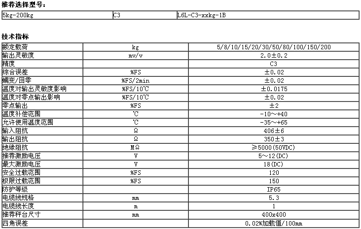 △、L6L-C3-200KG稱重傳感器可滿足3kg-50kg 量程范圍內(nèi)的測(cè)量。